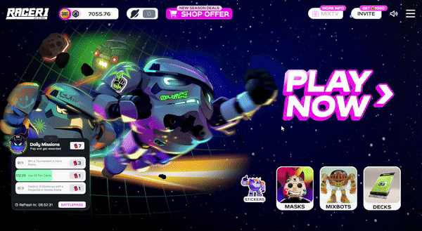 The Play button is your gateway to racing in MixMob: Racer 1. Clicking it opens up multiple ways to compete—whether you're looking to train, race casually, or take on high-stakes challenges.