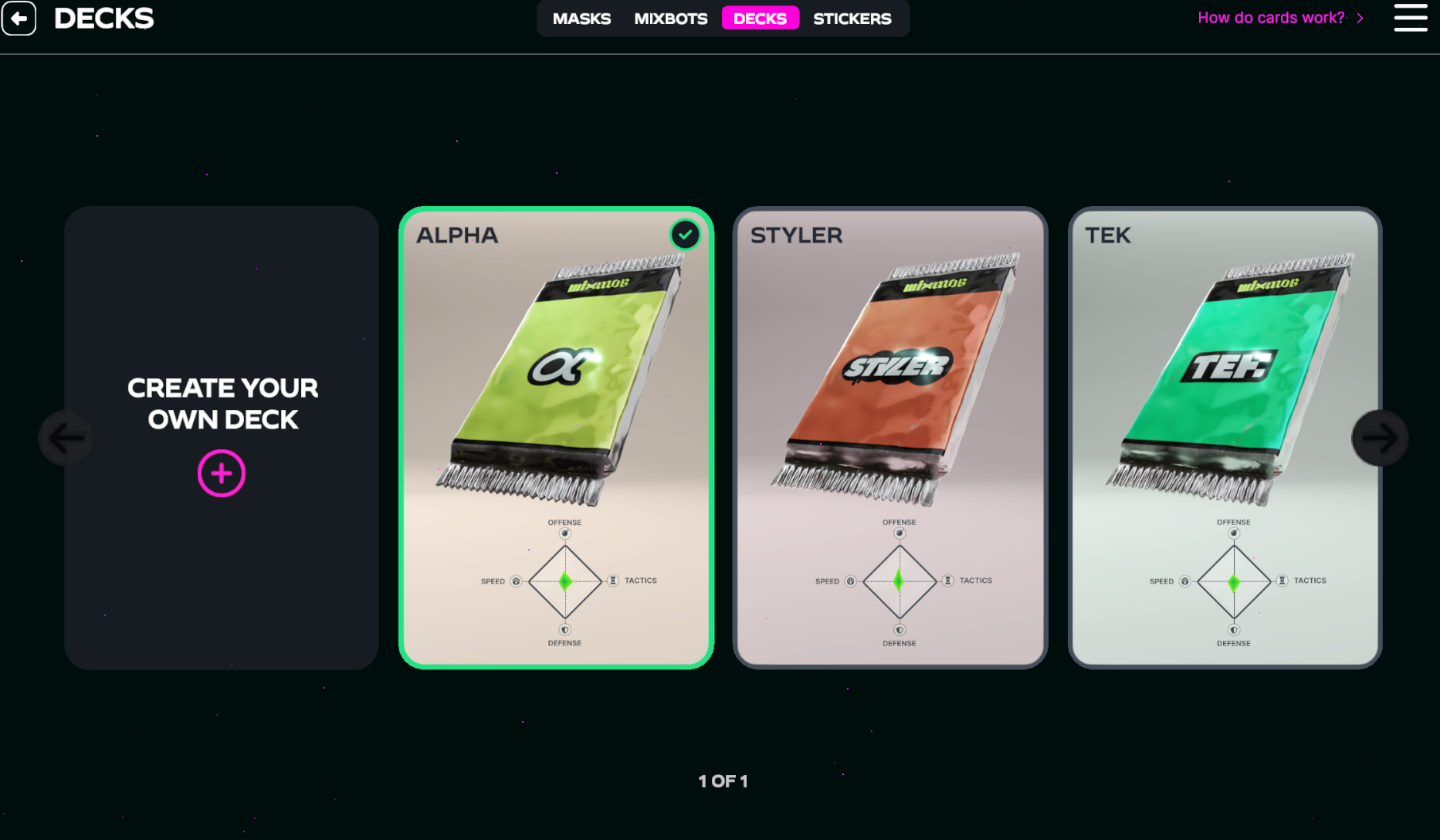 The Decks button is one of the most important features in MixMob: Racer 1. It gives you full control over the cards you bring into each race, allowing you to customize your strategy and outplay your opponents.