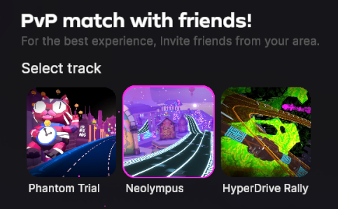 * Choose the track you want to race on. You can pick a random track or select a specific one for a more tailored experience.